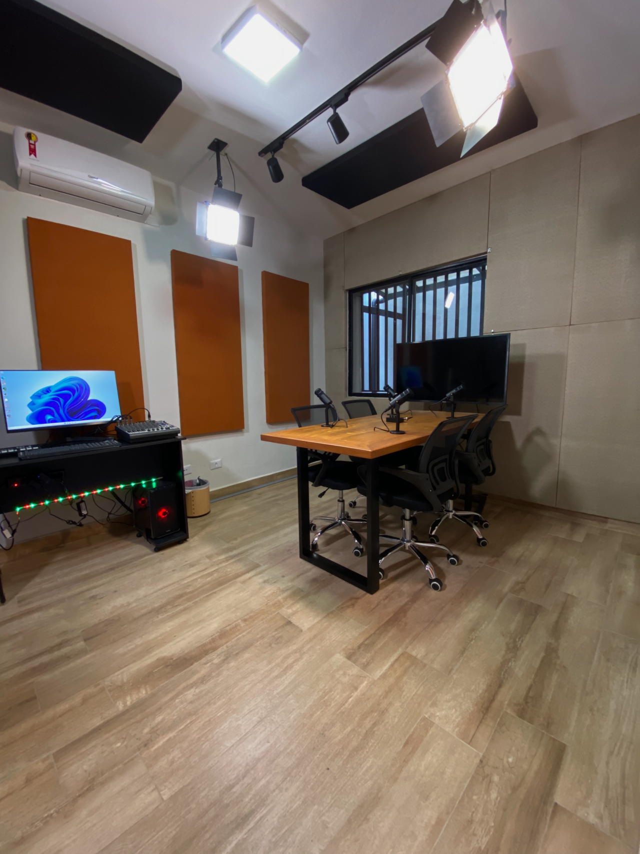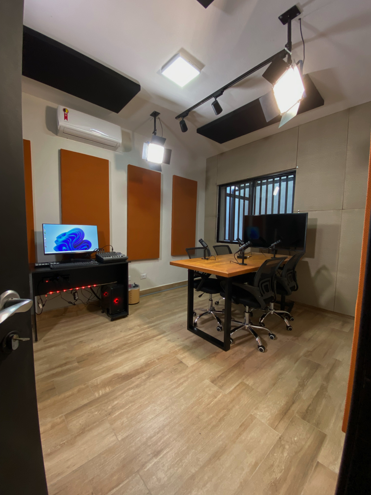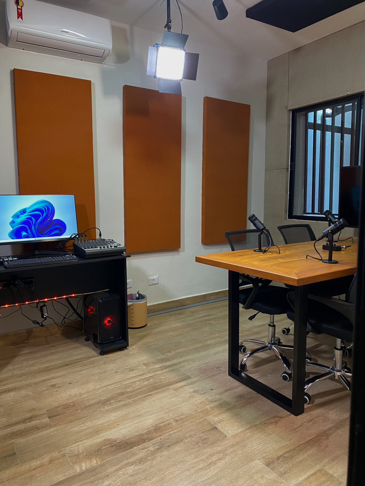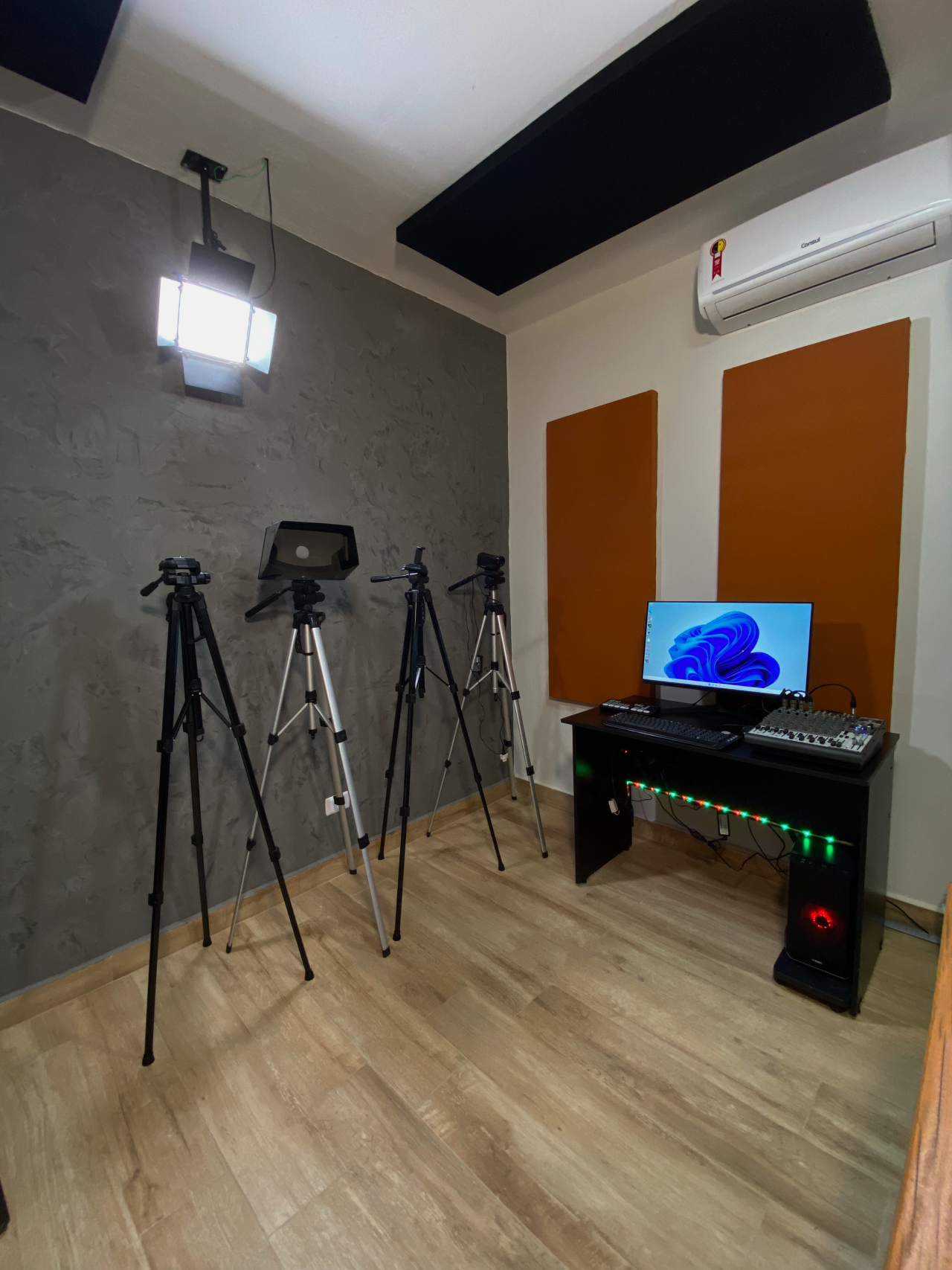 Estúdio com excelente estrutura, equipamentos e iluminação para produção de diversos conteúdos como filmagens e podcast. Esse estúdio é utilizado para produção de conteúdos autorais e para locação também, então se você tem interesse ou necessidade de um espaço preparado para o seu trabalho, entre em contato com a gente!